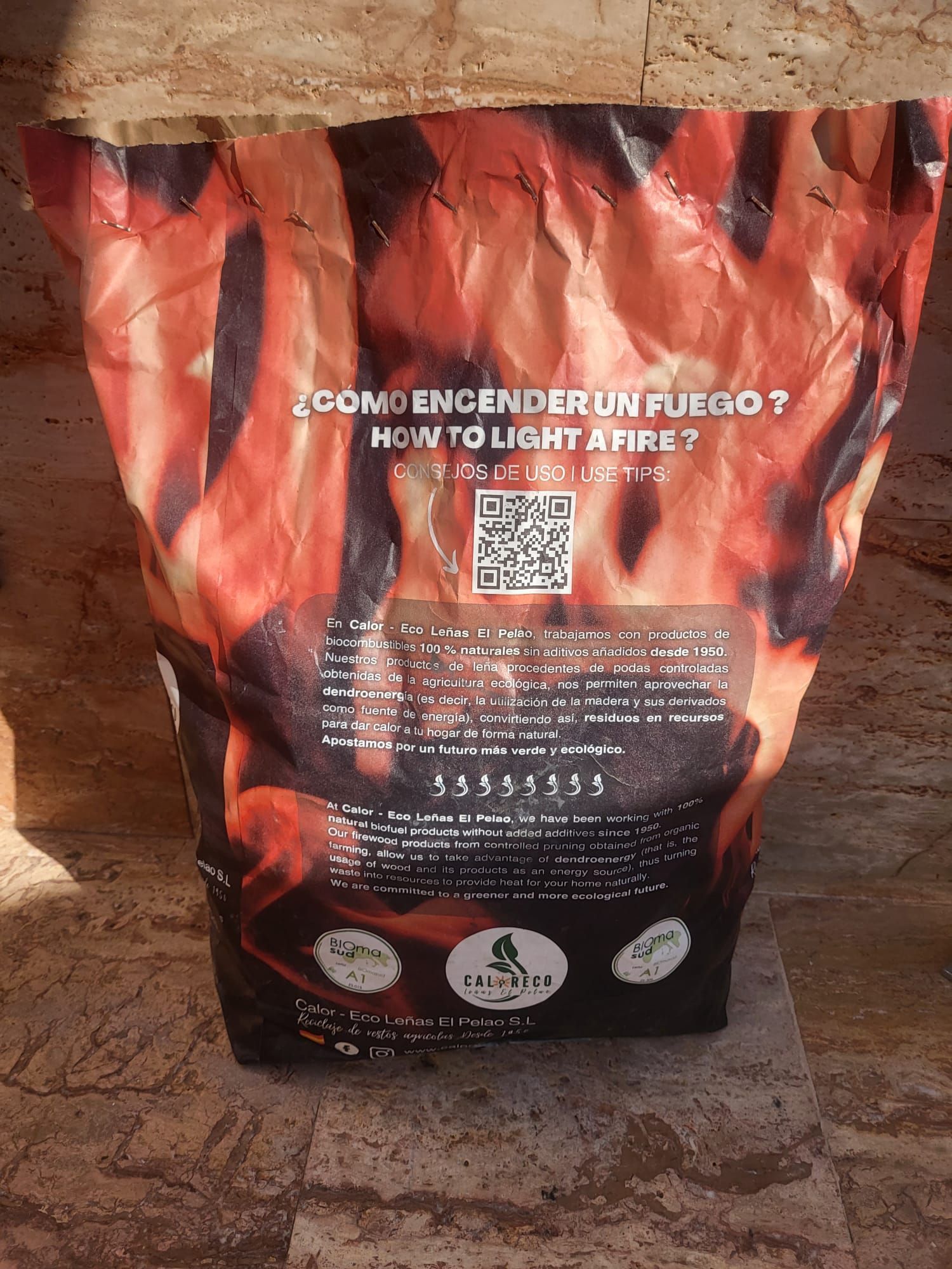 Calor-Eco Leñas El Pelao presenta su último producto: "Leña y Brasa", el saco de astillas de leña de olivo perfecto para encender tus fuegos de forma rápida y obtener ascuas grandes y duraderas.